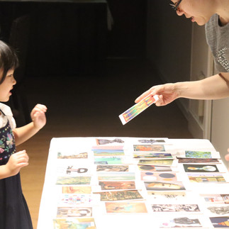 群馬県立近代美術館から教育普及ツールのアートカードをお借りして,簡単なゲームやミニチュア展覧会作りを通じて美術と仲良くなるゲームを行っていただきました.